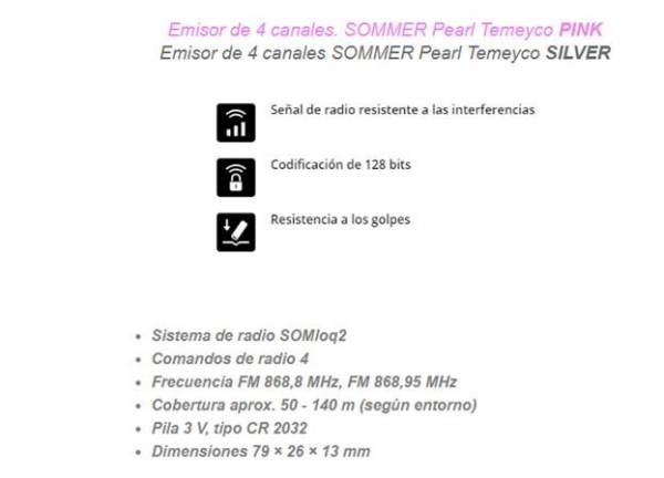 - Emisor de 4 canales SOMMER PEAR TEMEYCO SILVER