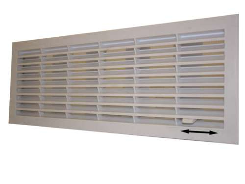 Disponibles en blanco y en negro. Rejillas de plástico ABS y de dimensiones 337x121mm. Incluyen mosquitera interna También disponible con sistema de cierre desde el interior